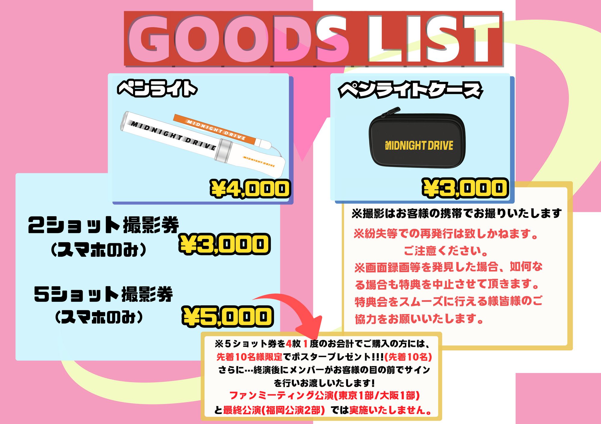 ※物販は開場と同時に開始いたします。物販購入列は各公演開場時間の10分前より形成いたします。