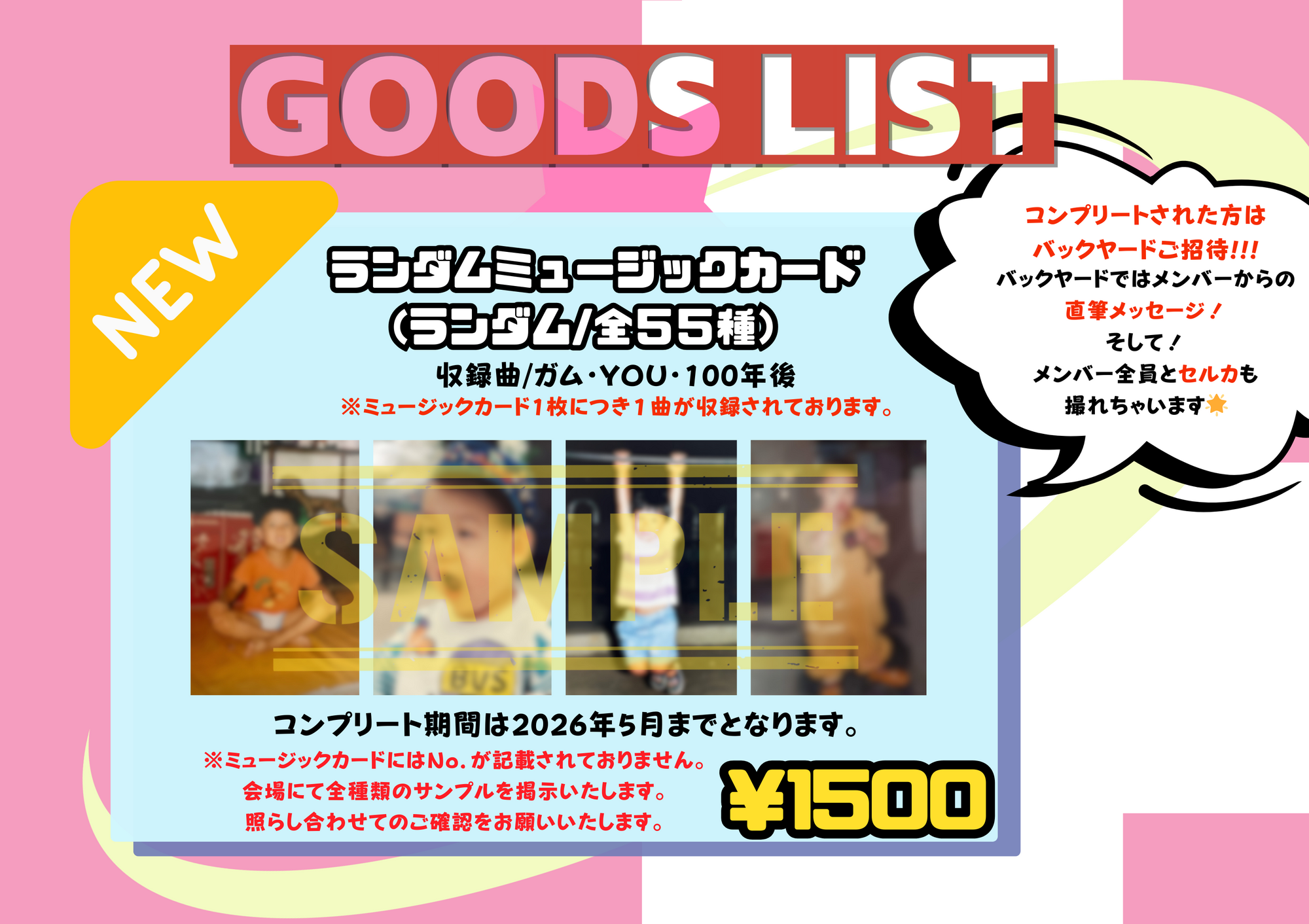 🎁お好きなミュージックカード1枚につきメンバー1人がお客様のお名前とメッセージを記入しプレゼントいたします!!(計4枚)
